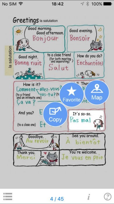 このアプリは挨拶・空港・ホテル・レストランといった日常生活で使うフランス語を繰り返し学習できます。フレーズに対する英単語やイラストが記載されているので、英語とフランス語をセットで覚えることができます。