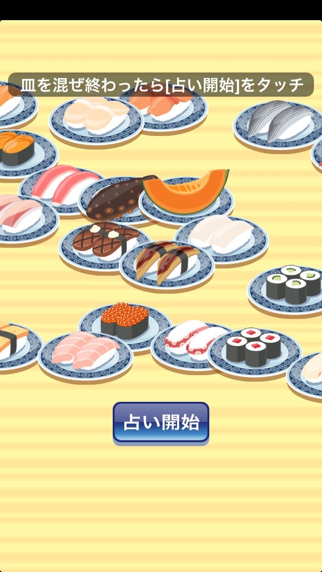 寿司皿を混ぜて占いスタート、ゲーム感覚で操作ができる