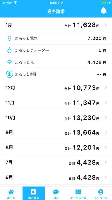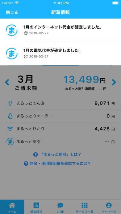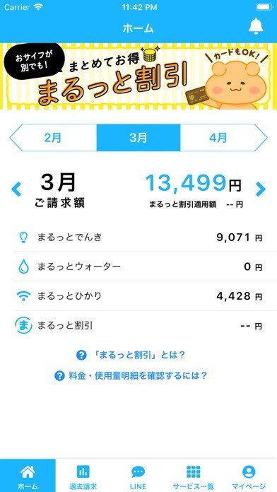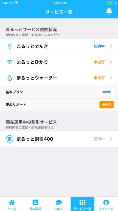 まるっとシリーズのサービスとして“まるっとひかり”“まるっとでんき”“まるっとウォーター”といったライフラインから生活に必要なサービスを提供しており契約をまるっと一元管理できるサービスアプリとなります。