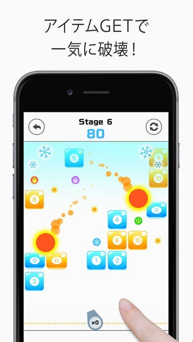 人差し指でボールをぽんと弾くだけでブロックを崩していくことができる簡単な脳トレゲームです。アイテムをゲットして、次々にブロックを破壊し、爽快感を感じられるゲームです。