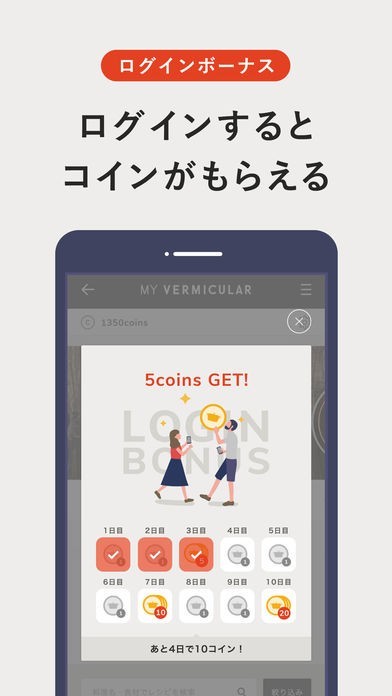 毎日ログインすると連続日数に応じたコインがもらえる!