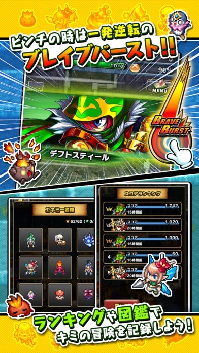 バトル中に条件を満たすと、キャラクターそれぞれが必殺技の「ブレイブバースト」で敵に大きなダメージを与えられます。上手に使えば、ピンチのときにも逆転勝利が可能です。
