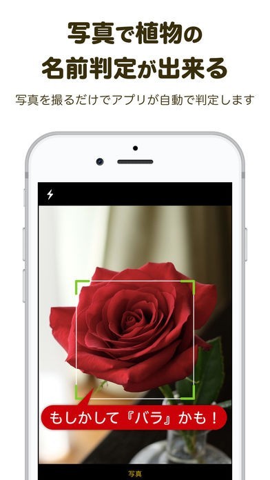 名前判定機能があり、写真を撮影すると、自動で植物の名前を判定する