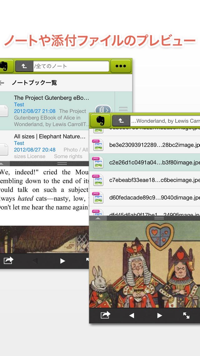 ・Evernoteの機能を使用するためには、Evernoteのアカウントが必要です。またEvernoteのノートを閲覧、編集するためには、本アプリを-
