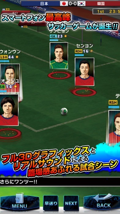 ◆ネイティブアプリならではの3Dグラフィックスを駆使した”サッカー感”満載の試合シーン!