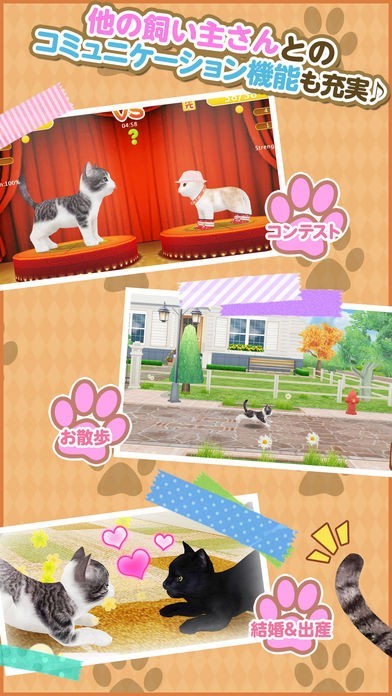 同じくスマートフォンを使って猫を育てている方とコミュニケーションを取ることができます。コンテストを開いて実力を競い合うこともできるので、モチベーションを高めることができます。