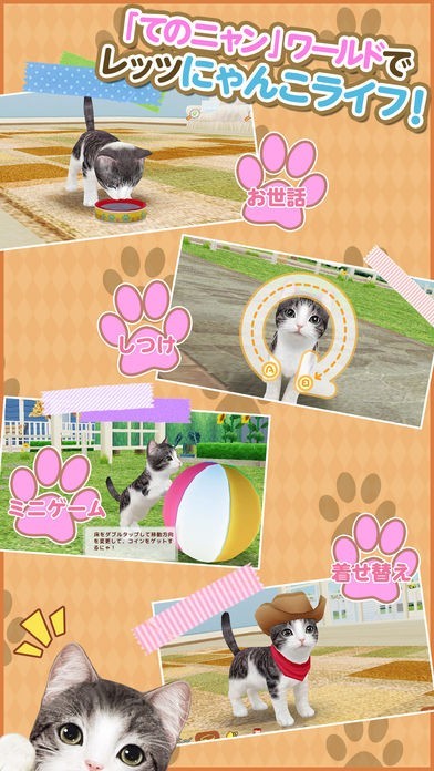 ご飯をあげたり、おもちゃで遊ばせたりといったように、本物のネコにするのと同じようなお世話をしてあげることができます。にゃんこを連れて街に出かけたり、ゲームならではの遊び方も可能です。