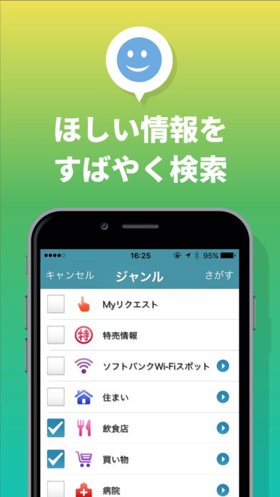 「あぐらいふ」では、「住まい」、「特売情報」などといったジャンルをチェックボックスで選択することによってその情報だけをマップ上に載せてくれます。 ピンにはそれぞれのアイコンが表示されるので一目でどのような場所か知ることが出来ます。 また、タップすることによって、詳細な説明を見ることが出来て、予算や定休日や営業時間や写真などといったものを見ることが出来るので実際に訪れる前に確認するのがいいでしょう。 他にはメールで送信などの機能が使えて情報を共有して友人と一緒に遊びに行くのに利用したりも出来ます。