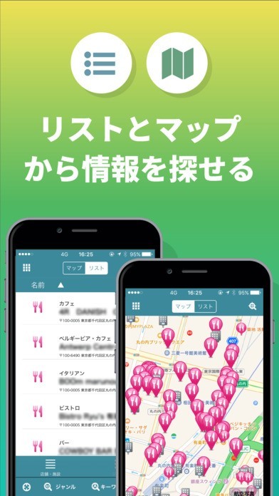 ジャンルをチェックボックスで選択することによってその情報だけをマップ上に載せられる