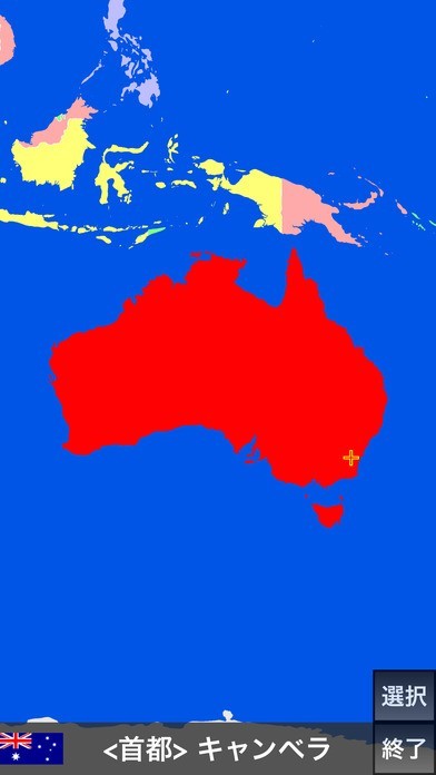 位置当てクイズなども用意!出題された国の位置を世界地図の中からタップで回答!