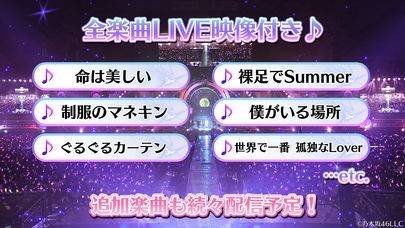 乃木坂46の実際に行われたライブ映像が使用されたリズムゲームとなっているので、乃木坂46のファンの人はもちろん、そうでない人も楽しむことができるアプリとなっています。