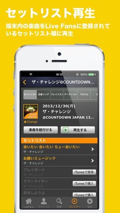 セットリスト機能搭載!ライブで演奏された曲順で音楽を再生!