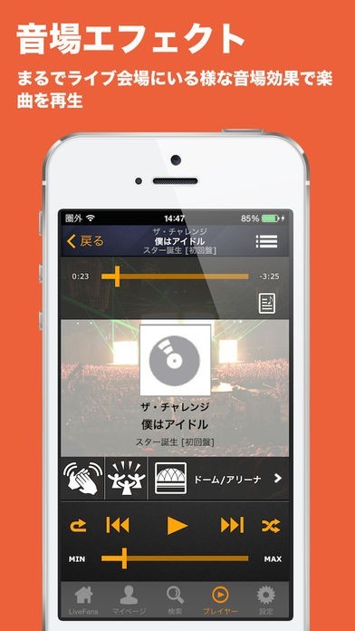 ドームやアリーナのライブ感を再現!エフェクト機能も充実した音楽プレイヤー!
