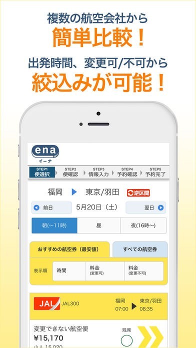 App Storeより引用国内格安航空券の予約ならena(イーナ)