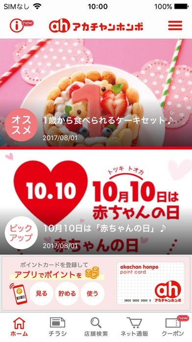 「アカチャンホンポ」は、赤ちゃん用品店のクーポンやお得情報が手に入るアプリです。本人確認認証することで、アプリがポイントカードとして使うことができます。そのためカードを毎回持ち歩かなくても大丈夫です。またクーポンも随時発行され、お気に入り店舗登録をすると、その店舗だけの限定クーポンも手に入れることができます。他にもプッシュ通知機能をオンにしておくと、チラシ情報も知らせてくれるので安い時期を見極めて購入できます。子持ちの主婦にはぴったりです。