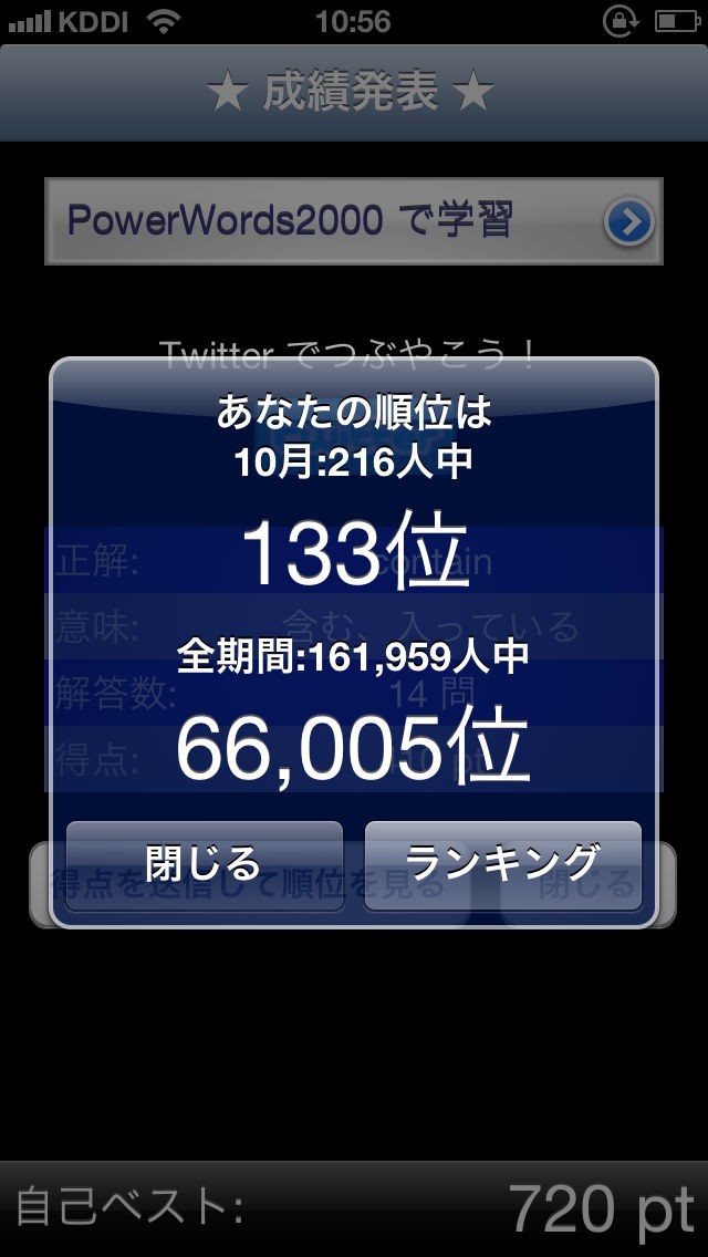 1単語正解するごとにスコアが加算されます。終了時点でスコアを送信でき、全世界のユーザと競うことができます!何度でも挑戦できるので、高得点目指してがんばりましょう。