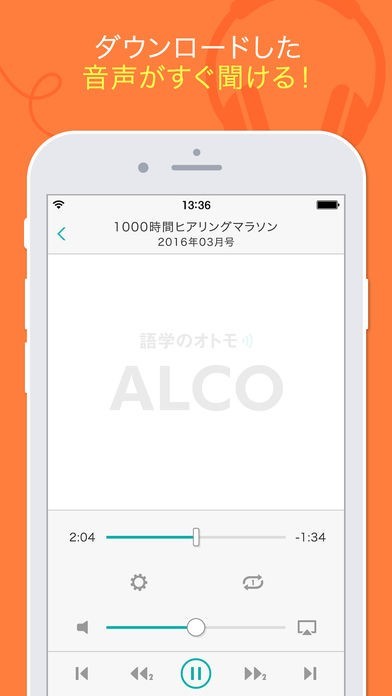 「語学のオトモ ALCO[アルコ](アルク)」は、語学学習者に役立つコンテンツが満載のアプリになります。ダウンロードセンターから学習コンテンツをダウンロードすることでいつでもリスニング学習を行うことができるようになっているほか、バックグラウンド再生機能で他のアプリを利用しながらでもリスニングのトレーニングが可能になります。