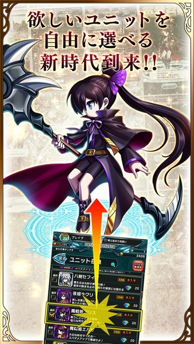 このゲームでは、従来のRPGとは違って初めから用意されているキャラクターでパーティを編成する必要はありません。自分の好きな見た目のキャラクターや能力のキャラクターを選択して自由にパーティーを完成させましょう。強力なボス敵との戦闘やアイテム集めなど目的に合わせて多数のユニットを組み合わせる自由度の高さが魅力的です。