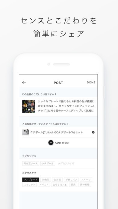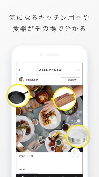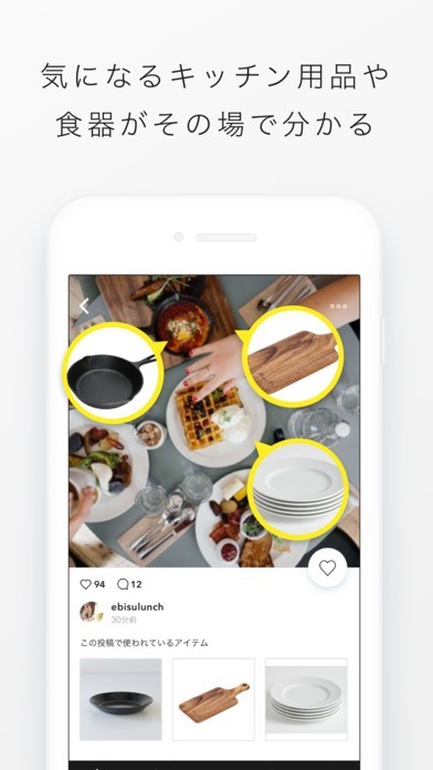 TABLESに投稿写真には、写真内で使われている商品情報を付与することができ、利用者は気になった商品の情報を知ることができます(※1)。
