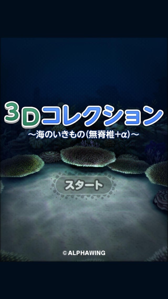 3Dコレクション 海のいきもの 無脊椎動物はクリオネなどの不思議で独特な美しさを持つ無脊椎動物の3Dグラフィックを楽しむことの出来るゲームアプリです。登場する生き物のCGはズームや視点移動などでさまざまなアングルから楽しむことが出来ます。登場する生き物はたまごから生まれるシステムでいわゆるガチャ方式となっています。たまごはスマホをシェイクしたり左右に割るような動作によって中の生き物が生まれます。育成などの要素はなく、たくさんの生き物を水槽から入れ替えて鑑賞できます。