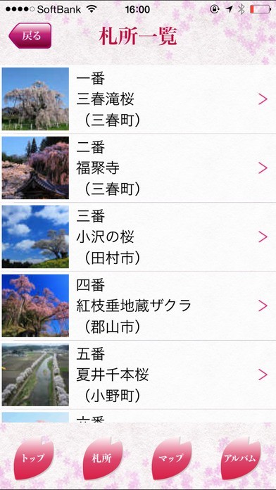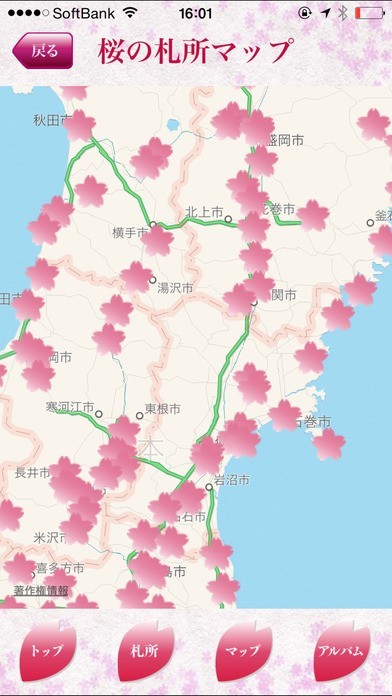 マップで表示されるから桜の季節はもちろん、桜の季節以外でも東北旅行に活躍!東北旅行のお供に!