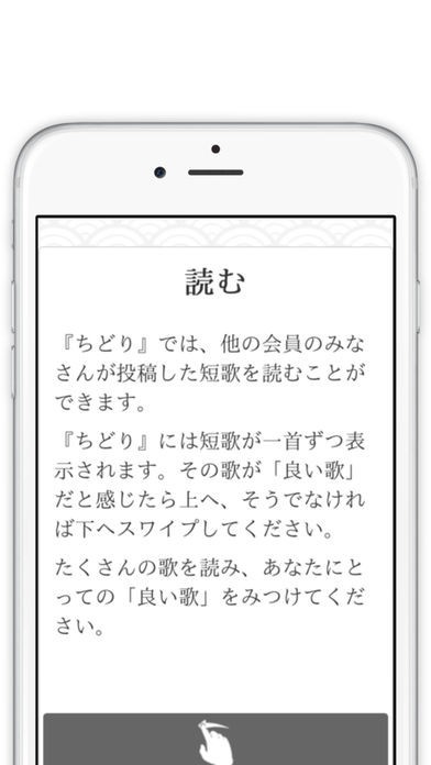 短歌専門投稿ツール「ちどり」では、シンプルに短歌を楽しむことができます。 メインとなる投稿機能では使いやすいエディターを利用可能。 とっておきの歌を詠んで投稿してみましょう。 他ユーザーの投稿が楽しめるのもこのツールならではのポイントです。 良いと思った作品に出会えたら指先を上へとスワイプすることで、その作品に評価をつけることができます。 自分だけの歌集を作る機能なども搭載。気持ちを込めた歌を人に見て貰う喜びや、歌集を作る楽しみを味わってみてはいかがでしょうか。