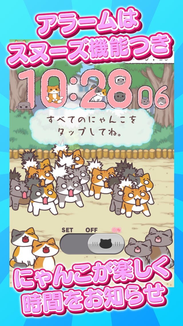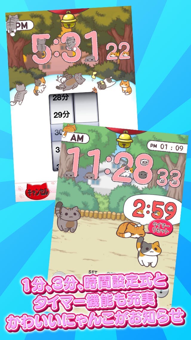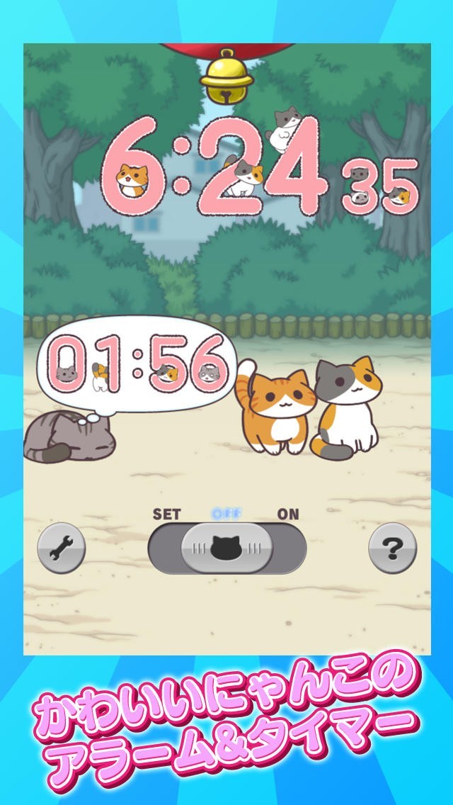 タイマーやアラームでもねこ村の猫たちと会おう!ねこのタップだけでもサッとセットできる便利機能付き!