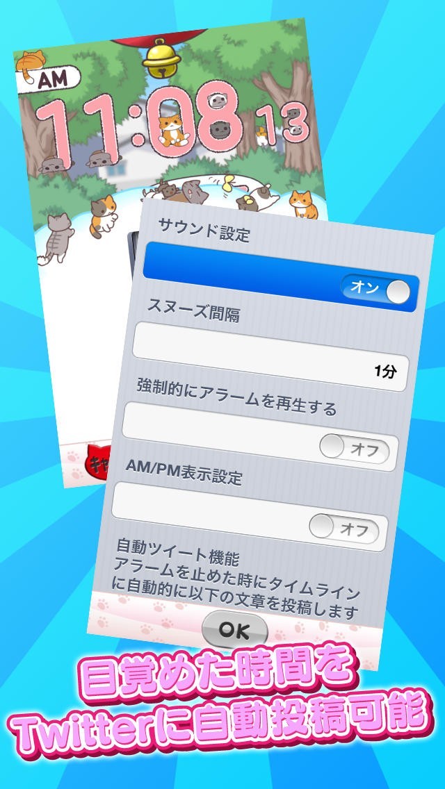 可愛いにゃんこたちのにゃんにゃんという声がアラーム音!