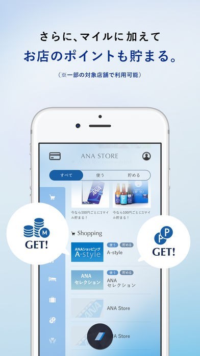ANAをよく利用する人で、マイレージを貯めたい人には便利なアプリです。自分がいつ何マイルためたか、いつまでに使い切らなければ行けないか知らせてくれます。また、マイルがある程度貯まるとアプリからお買い物をすることができます。