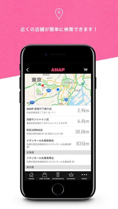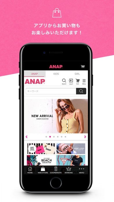 子どもから大人まで、お手頃な価格で最新ファッションアイテムが揃うと人気のANAPの公式アプリです。ANAPの商品をアプリで購入できる事はもちろん、アプリ限定のクーポンが配信されるので十店舗で購入するよりもお得に商品をゲットできます。また、ANAP商品の最新オシャレコーデもチェックできるので、洋服選びの参考になり便利です。近くのANAPのお店を検索することもできるので、どんな場所にいても最寄りのANAPのお店が見つけられます。