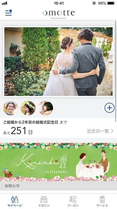大切な記念日までのカウントダウンが表示されます。登録した記念日に合わせたコンテンツのお勧めも受け取れるようになります。