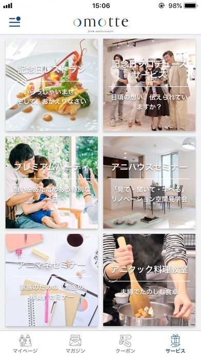 ・アプリ内から、会員様向けに提供している「記念日レストラン」イベントや各種セミナーなどの予約サイト、ギフト販売のオンラインストアへアクセスすることが出来ます。