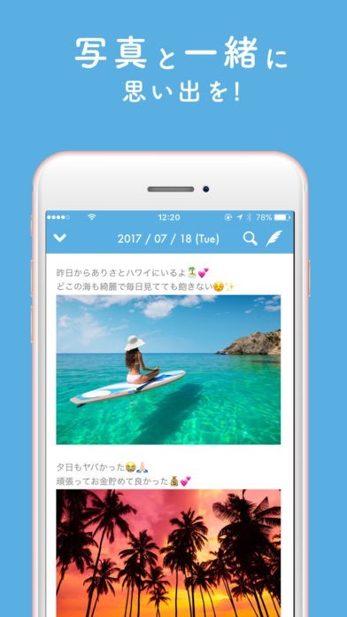 毎日の出来事を写真と共に日記として残し、大切な思い出を保存しよう