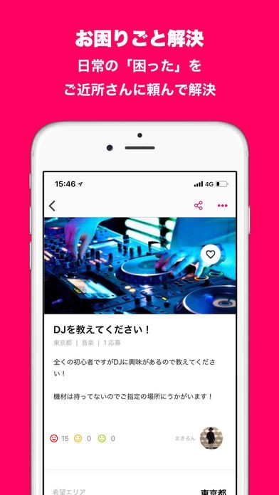 エニタイムズは、スマホを通して近所の人と会って助け合うことができるアプリです。