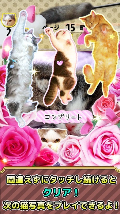 間違えずにタッチし続けると、次の猫写真のページに進みます。