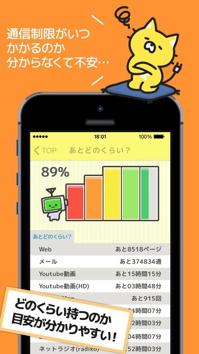 気になる通信料がひと目で分かる!通信制限対策や節約にも最適!