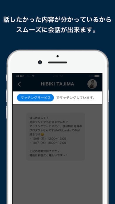 話しをしてみたいユーザーを右にスワイプしましょう。