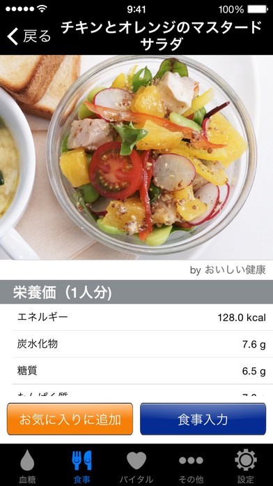 食事入力機能も充実。写真添付もできるため食事管理にお役立ち!