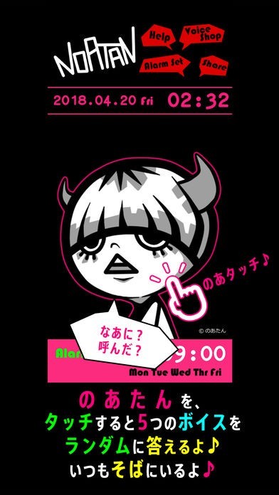 またトップ画面の、のあたんをタッチすると5種類のボイスで答えてくれるので、いつも一緒にいる気持ちになります。