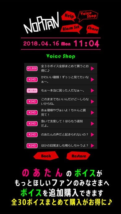 のあたんのボイスで起こしてくれる、のあたんファンのための目覚ましアプリ「のあらーむ」ができました。