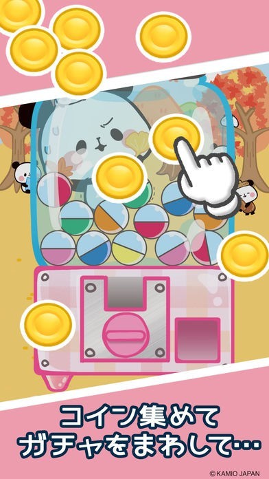 本当にガチャガチャを回しているようなリアル体験と共に、可愛いキャラクター「もちもちぱんだ」(通称もちぱん)を集めよう。