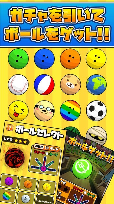 練習モードでやり方を覚えたら、全国のプレーヤーとも対戦してみましょう。勝てばどんどんランキングが上がります。たくさんのボールから自分好みのものを見つけて日本一のプロボウラーを目指しましょう。