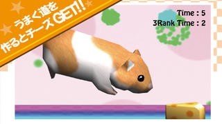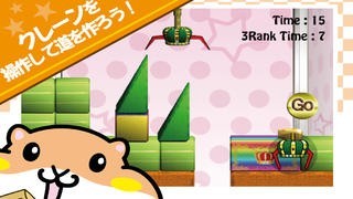 「ハムスタークレーン」アプリとは自分でクレーンを操作して道を作ります。そして、その道をハムスターが通りハムスターの大好物であるチーズをハムスターにあげることができたら成功というものです。新感覚のパズルゲームとなっています。 クレーンでさまざまな形をした図形を移動して道を作ります。道作りを間違えるとハムスターがうまく通ることができずにチーズをあげることができません。 素早く道を作ることも大切ですがなによりも安全な道を作ることが重要です。 ぜひ、いい評価を得られるような道作りを目指しましょう。