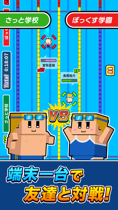 かわいいキャラたちが、メドレーをはじめ、自由形・平泳ぎ・背泳ぎ・バタフライを完全再現!