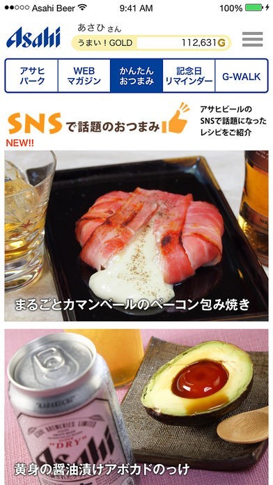 アサヒビールアプリでは様々なWEBマガジンやコラム、おつまみのレシピなどが掲載されており、よりお酒を楽しむことができます。コラムやWEBマガジンを読むとキャンペーン応募のポイントが貯まります