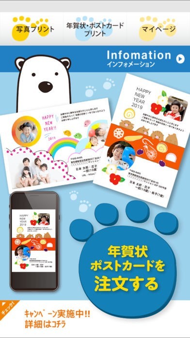 App Storeより引用写真プリントでお馴染みの「しろくまフォト」が、2018年しろくま年賀状として登場!