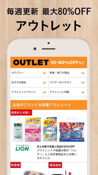 クーポンも貰えてアウトレット品、セール品とカテゴリー分けがされていて商品探しもスムーズにできます。