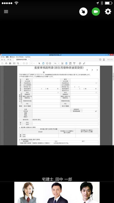 本アプリを使用することで、iPad/iPhoneから、IT重説に参加できるとともに、Webでの物件案内、室内見学など、物件探しを円滑に行うことができます。