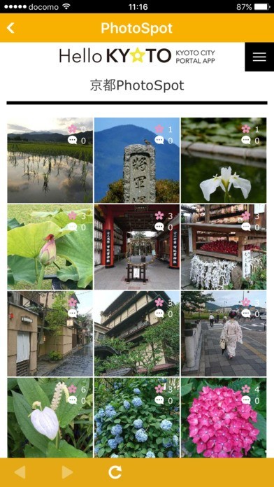 京都は国内トップクラスの観光地ですが、見どころがありすぎて何処に行くべきか分からない、または行っておけば良かった、という旅行者はたくさん存在します。「Hello KYOTO」はGPSと連動し、プッシュ通知にて知らせてくれますので、京都初心者でも行くべきスポットを逃しません。プッシュ通知の活用ポイントとしては、目的地を大まかに決定しつつ、通知に合わせた行き先変更も考慮しておくことです。バッテリーの消費が気になる場合はGPSオフが可能となっており、旅行計画の際の情報入手先という使い方も選択できます。また、フォトスポットの項目は投稿とシェアができますので、情報提供や訪問先選定の参考資料として使ってみるのも良いでしょう。