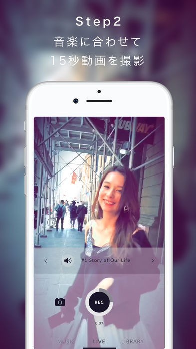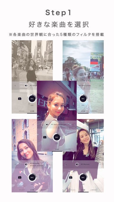 スマートフォンを使って簡単にオリジナルプレイリストを作成することができるアプリとなっていて、収録されている5種類の楽曲の中から好きなものを選択して動画を撮影するだけで作成可能です。